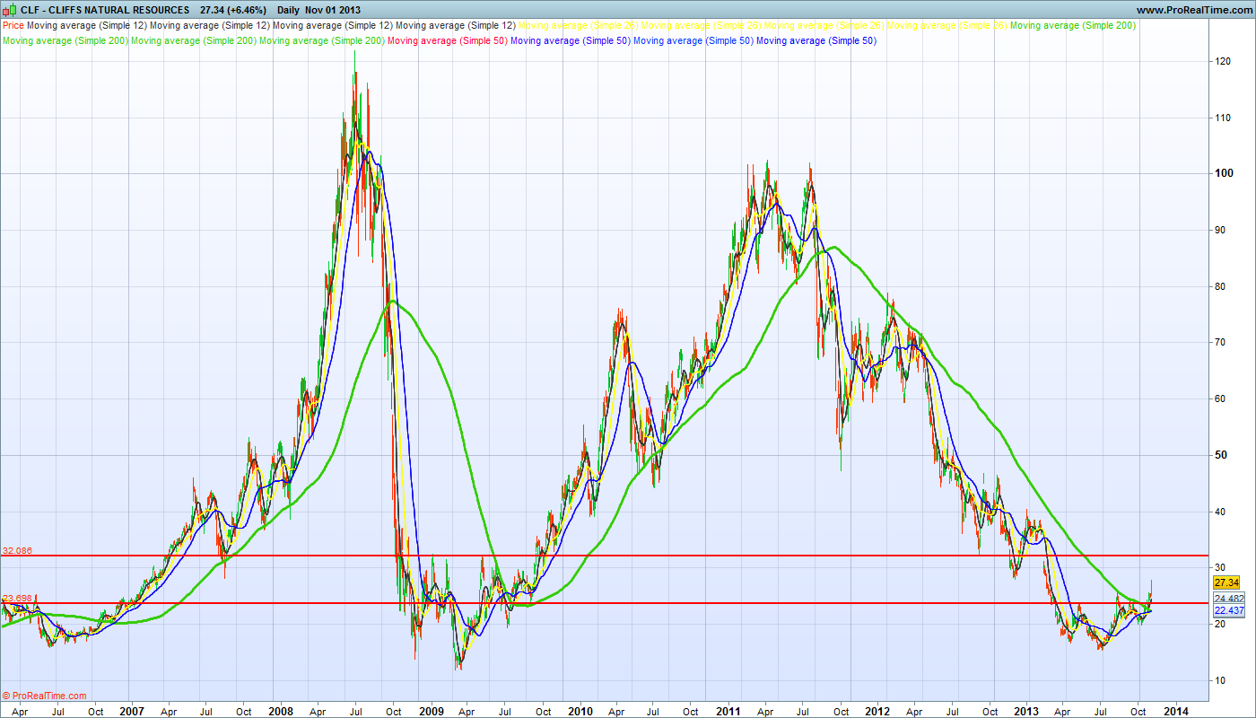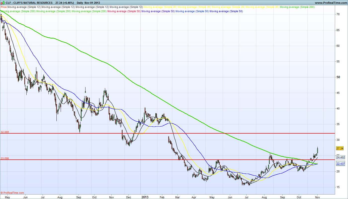 Olha, quando a CLF é preciso ter cautela para já, é verdade que a vela é verdinha, mas face ás subidas desde os 20 USD ( desde inicio de outubro) até agora é uma valorização fantástica, e pode fazer quiçá em breve um reteste ao suporte pelos 24 USD ( o que até seria "saudável")