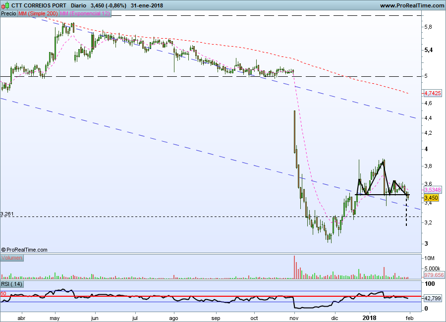 Em período de correcções tenho duvidas que aguente por aqui e não vá novamente testar a zona dos 3 euros numa correcção mais acentuada do mercado.