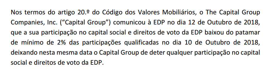 Capital Group tinha 12% e foi vendendo tudo , já estava abaixo de 2% , a 10 Outubro e provavelmente deverá vender tudo , que foi o que esteve a fazer desde que tinha 12% há pouco tempo.