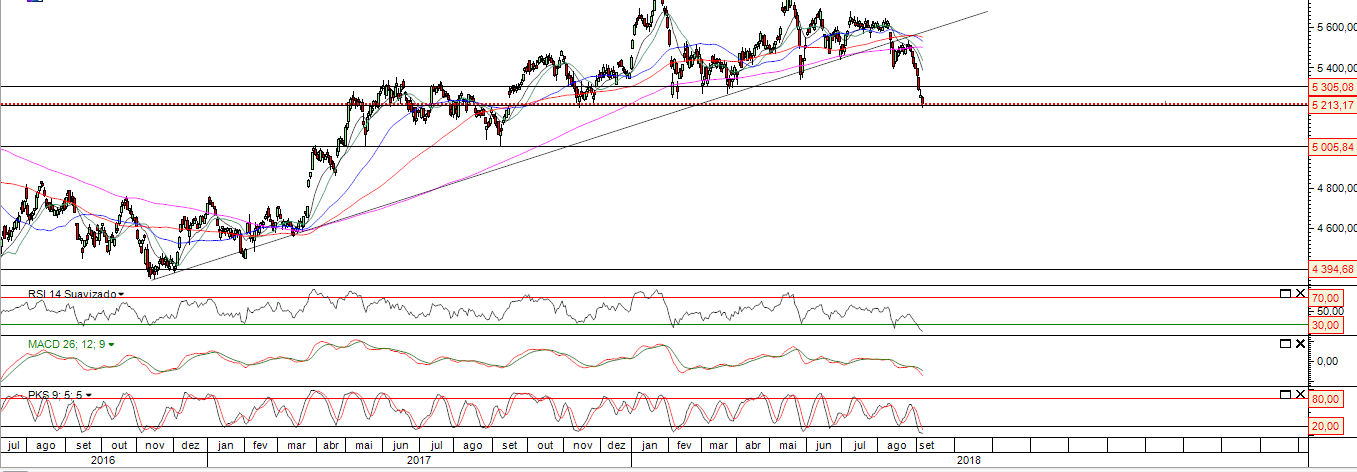 se a queda continuar vamos ver se na zona dos 5180 -150 seguram o indicie. se assim for deve acontecer um bom ressalto desta longa queda. se quebrar est zona temos os 5087-5000.