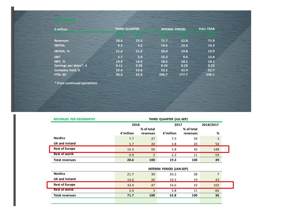 Mas o mais interessante são os resultados e a maior subida de resultados obteve no resto da Europa +148% (onde devem estar os resultados da Nossa Aposta).