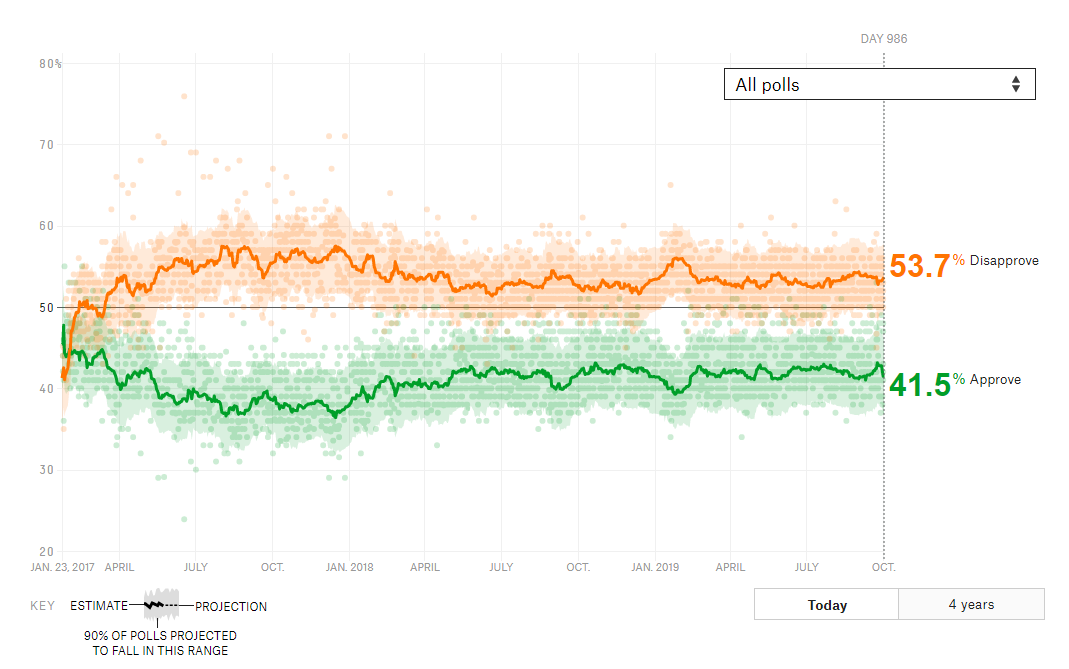 Com as guerras comerciais como plano de fundo, se o Trump não vence nos concursos de popularidade, não foi o desastre na opinião pública que aqueles primeiros meses fizeram parecer. E lá vão perto de 1000 dias...