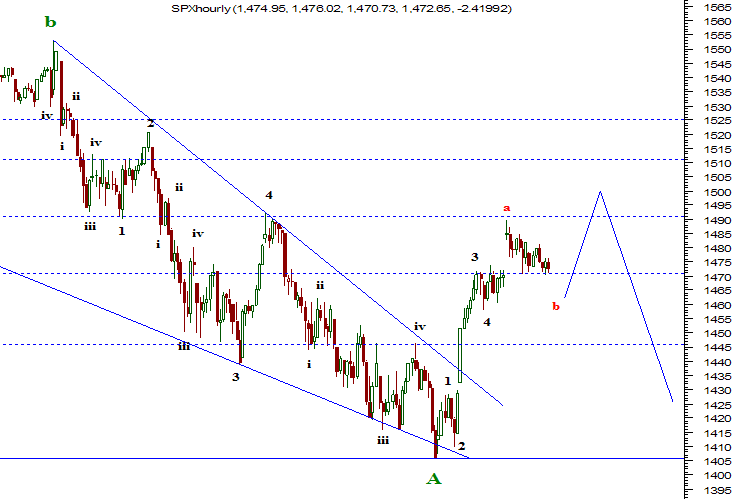 No dia 29 de Novembro tinha dado duas hipóteses do que eu pensava que o índice poderia fazer. Desde aí considerei que o índice iria fazer a primeira hipótese. Como tal, espero uma quebra dos 1490 pontos antes de voltar a fazer novos mínimos inferiores a 1406 pontos.