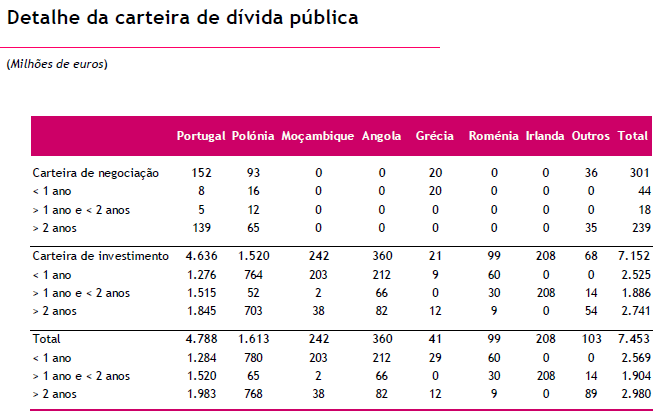 Alguém me poderia dizer os valores de dívida pública portuguesa que o BCP tem no Balanço, assim como BES, BPI e Banif?