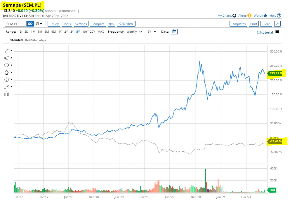 Semapa. Evolução da cotação nos últimos 5 anos.