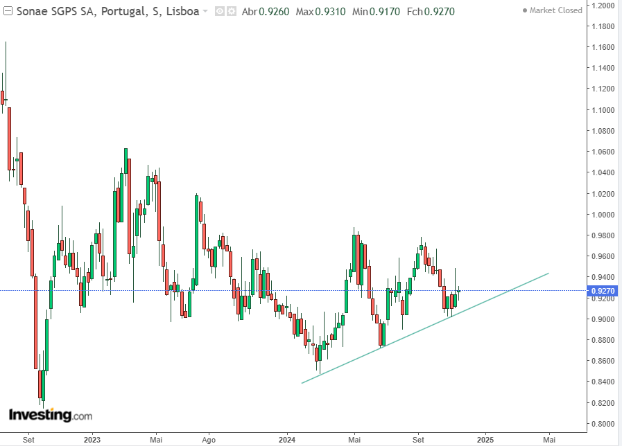 MarcoAntonio Escreveu:Aqui fica o update com a sessão pós-resultados. A acção chegou a tocar nos 94.8cts no intraday, mas fechou pelos 91.9...