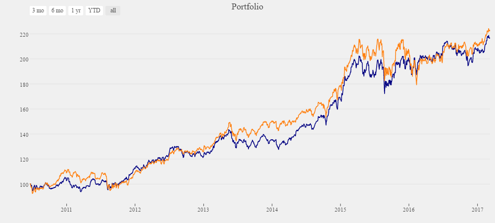 VirtuaGod Escreveu:A azul o NN (L) Food & Beverages X Cap EUR LU0332193779 e a laranja um antigo favorito meu, o Fidelity Gl Consmr Industries A-EUR LU0114721508. O NN até tem uma ligeira vantagem de sharpe (devido a menor desvio padrão), mesmo o Fidelity apresentando melhores retornos. Pena não apanhar 2008. O inception do NN foi apenas em 2010-06-18.