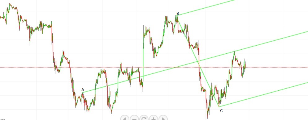 por último, uma outra questão que já era para te fazer há algum tempo, e para isso anexo uma outra fork ascendente que casa muito melhor com o preço do que a anterior que tinha traçado (tanto a center median line em si, como também a linha B-C), no entanto, apenas utilizei um pivot relevante (C - máximo relativo) para definir a fork (A e B não são pivots relevantes). e a questão é esta: uma qualquer fork (genericamente falando) que não seja definida apenas por pivots relevantes, poderá, ainda assim, ser considerada como válida? ou por essa mesma razão não deverá ser considerada?