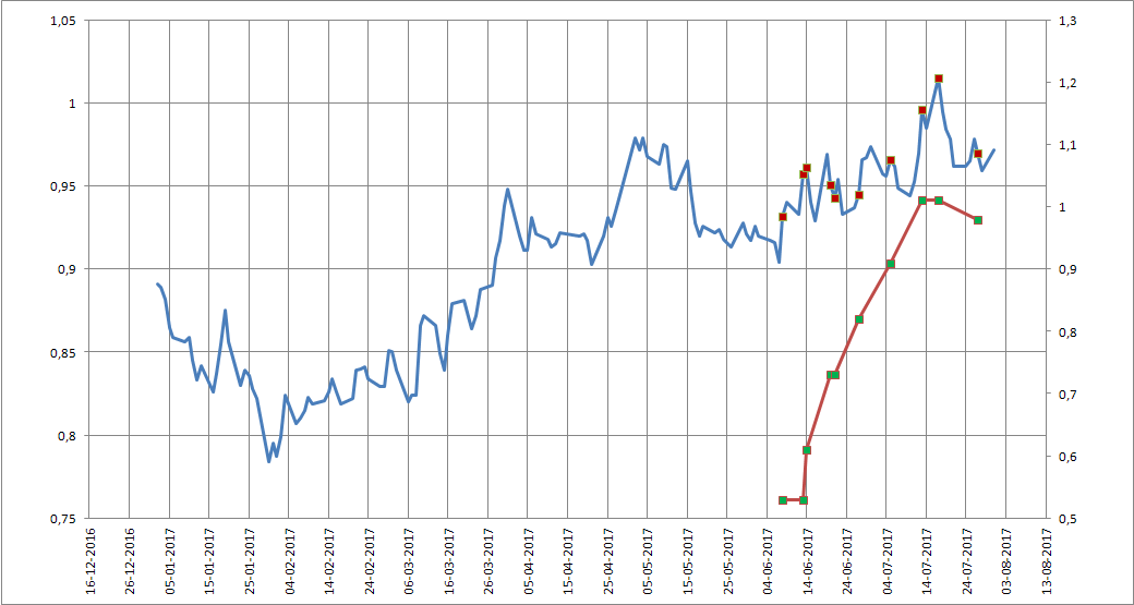 Se não ultrapassar 1 euro antes meados de setembro a minha opinião é que depois corrige com o mercado em geral, existindo período de correcção.