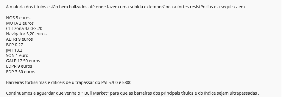 QUem acha que isto é um Bull market para subir com subida de 4% no ano e com cotadas completamente barradas nas resistências , continua a comprar e daqui a 3 meses vemos onde está o valor das cotadas