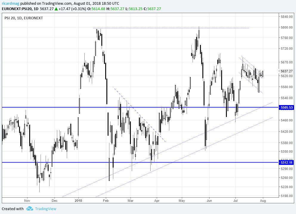 Para já no PSI , mesmo com inicio do mês de agosto o índice e as principais cotadas mantêm-se abaixo das zonas de fortes resistências anteriormente identificadas , sem que nenhuma tenha até agora sido ultrapassada