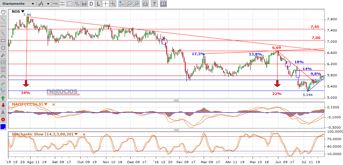 A Nos tenta hoje um ressalto, depois do estado "sobrevendido". Apesar disso, os ursos dominam em todos os horizontes temporais.