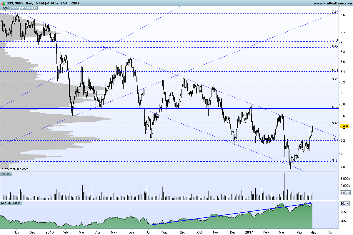 A NOS está a dar os primeiros sinais para evoluir a favor da intenção do gráfico diário.