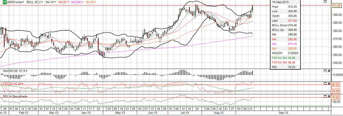 AMZN na zona dos máximos históricos alcançados em Julho.