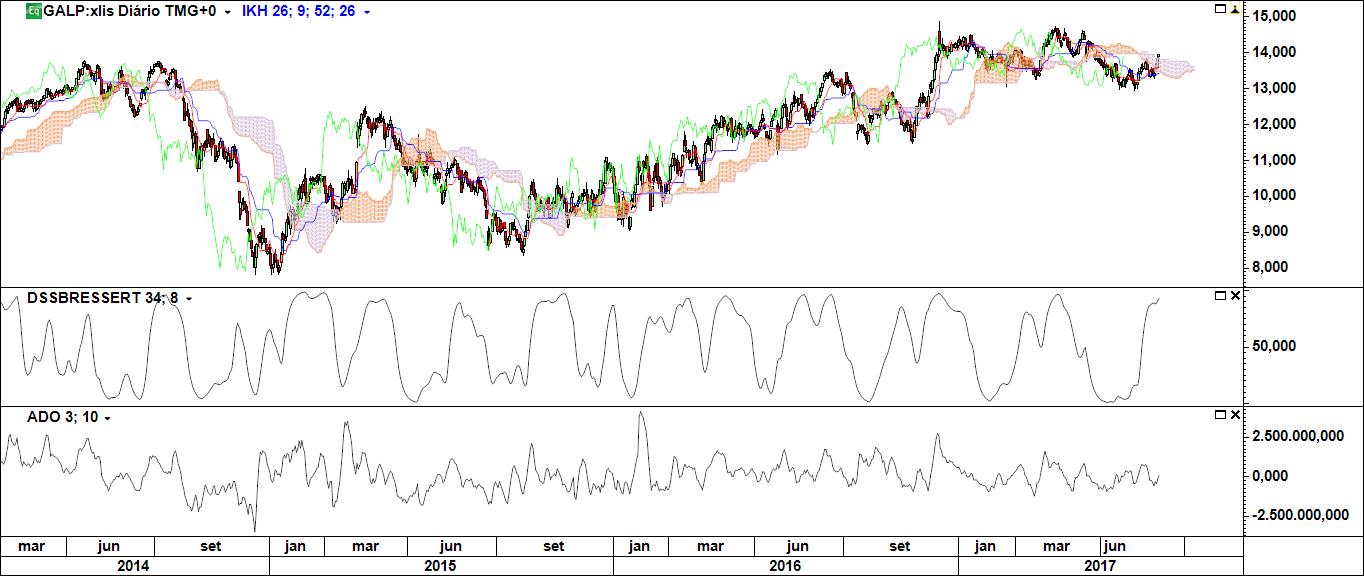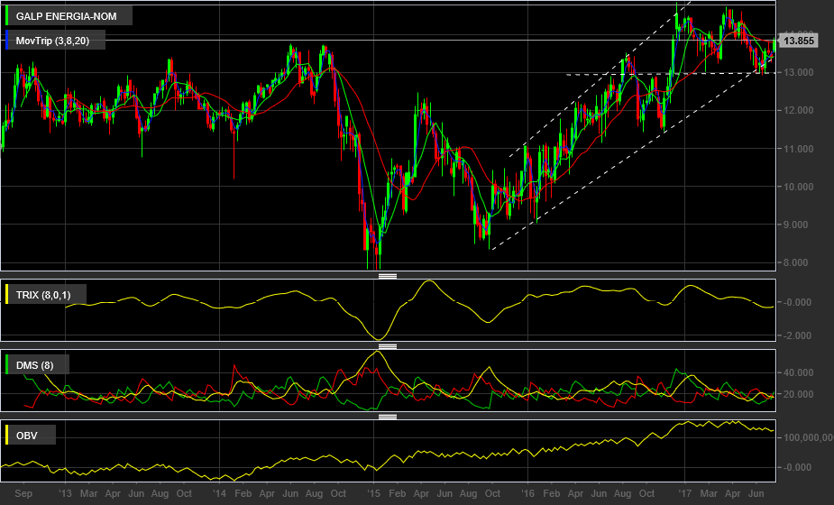 A galp está em lateralização desde dezembro de 2016 depois de forte subida.