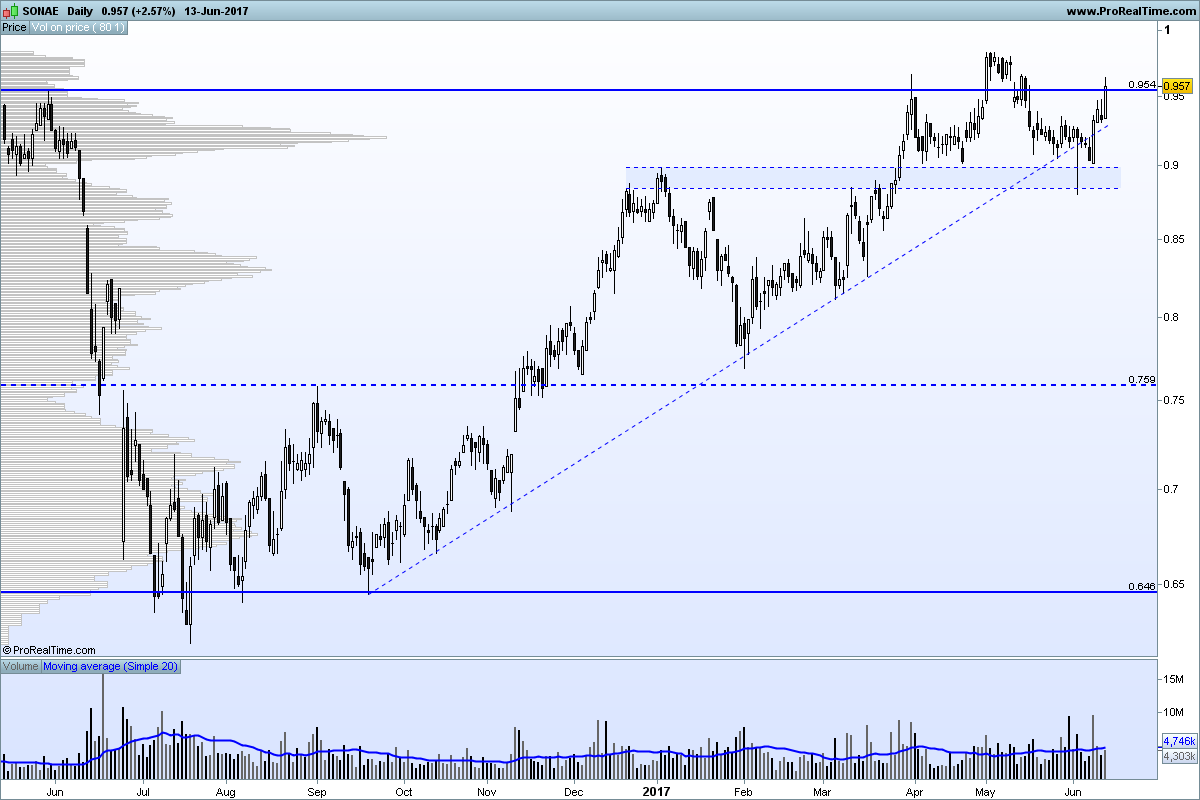 Diria que o ideal é consolidar agora acima dos 0.95. De todo o modo considero a resistência dos 0.9 - 0.95 quebrada.