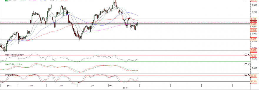 Só a quebra da resistência dos 2,80€ com volume, a faz chegar aos 3,00€.