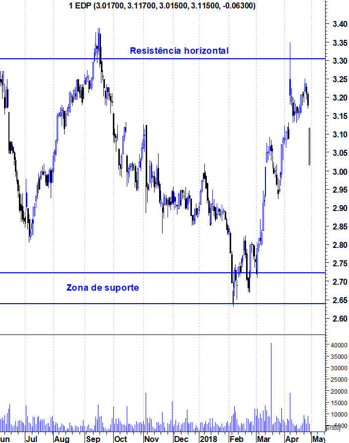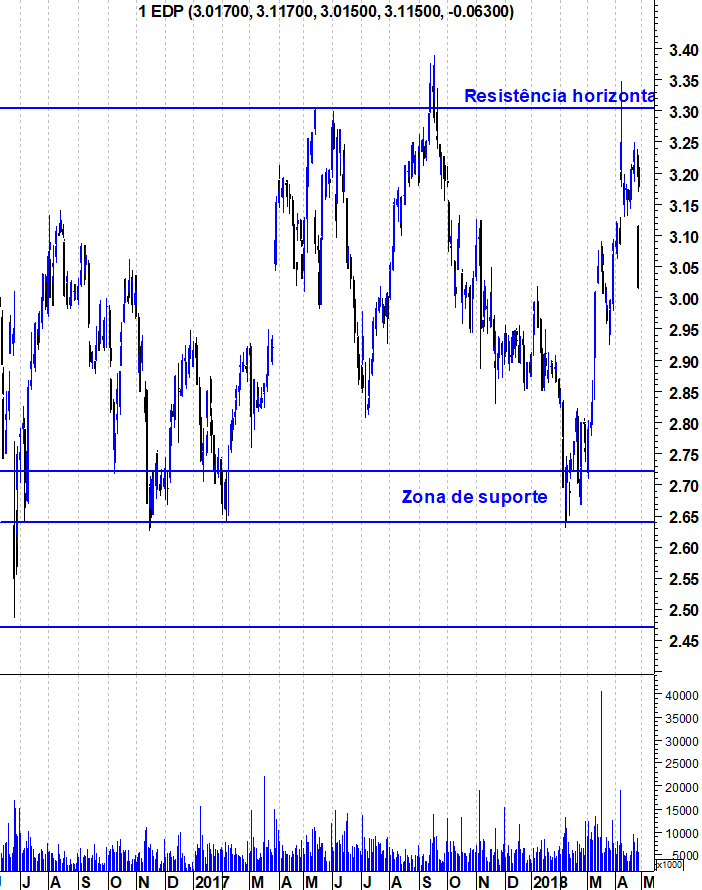 Deixo-te aqui os gráficos da EDP para veres com os 3 euros não têm qualquer relevância na acção. Ela tem andado para cima e para baixo desse valor, sem qualquer problema. Mas como te dava jeito para justificar uma subida, usaste esse valor.