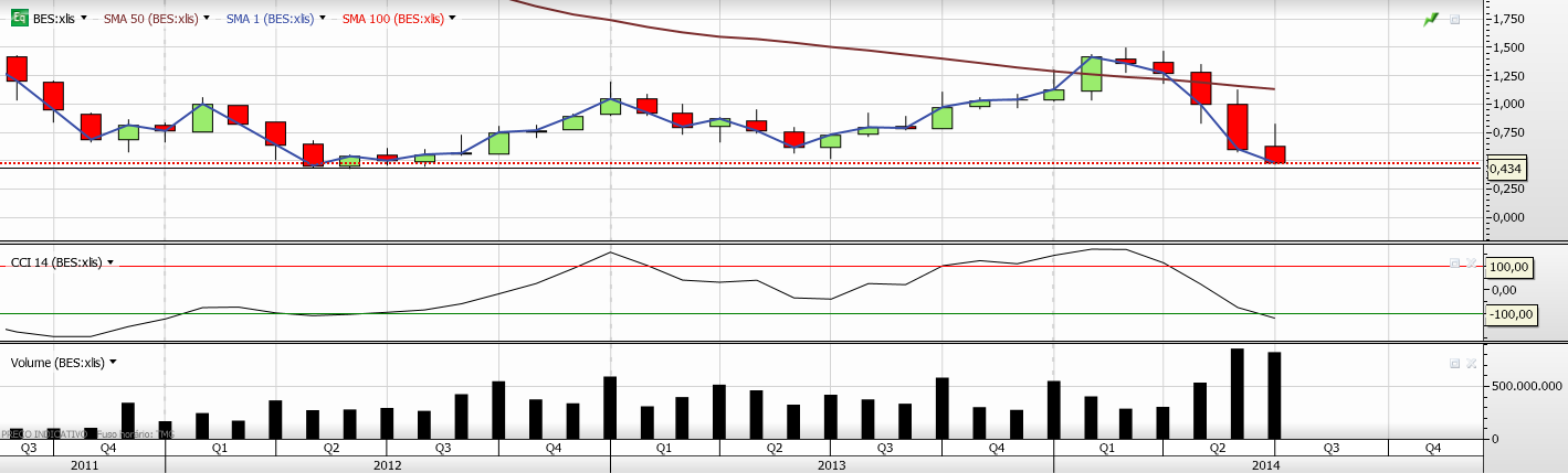 O BES para a semana máximo até final do mes deve recorrer à ajuda estatal. Cotação a afundar