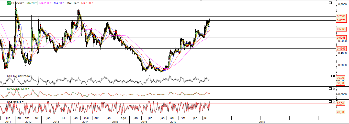 E passar da zona resistência 0.66 - 0.70 que vem desde desde 2011 e onde foi varias vezes ao longo dos anos e recuou também vai ser dificil