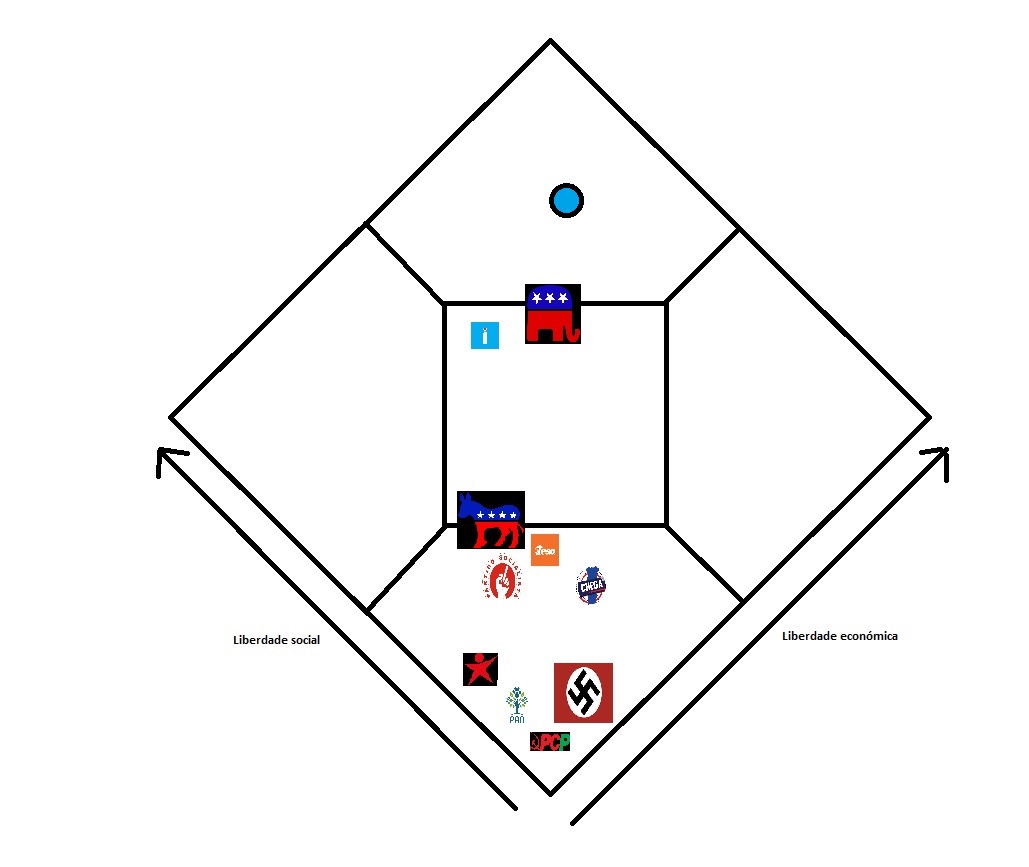 Mapa de Nolan dos partidos portugueses, do GOP e Demonocratas.