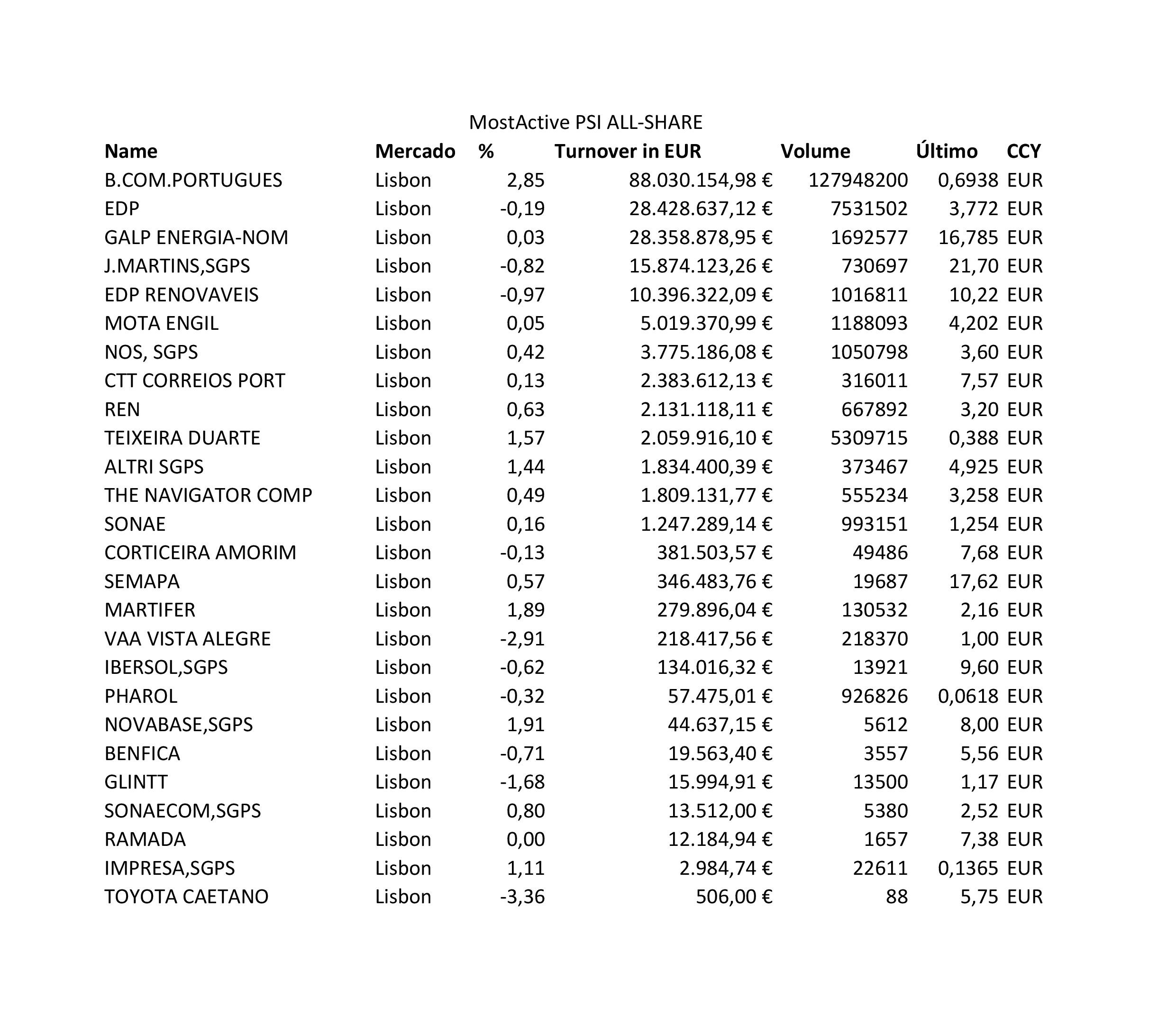 Nota também para o facto de neste periodo ter mais movimento financeiro que 3 integrantes do PSI Corticeira, Semapa e Ibersol, é uma nova realidade .