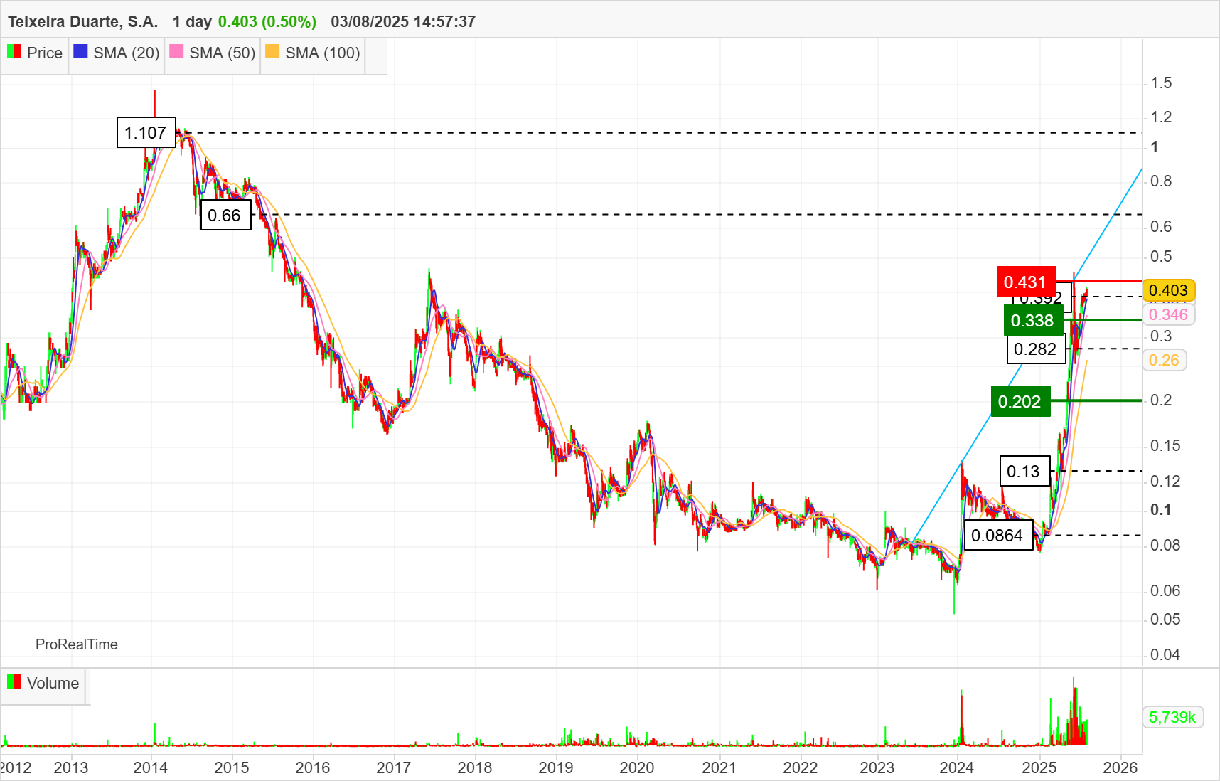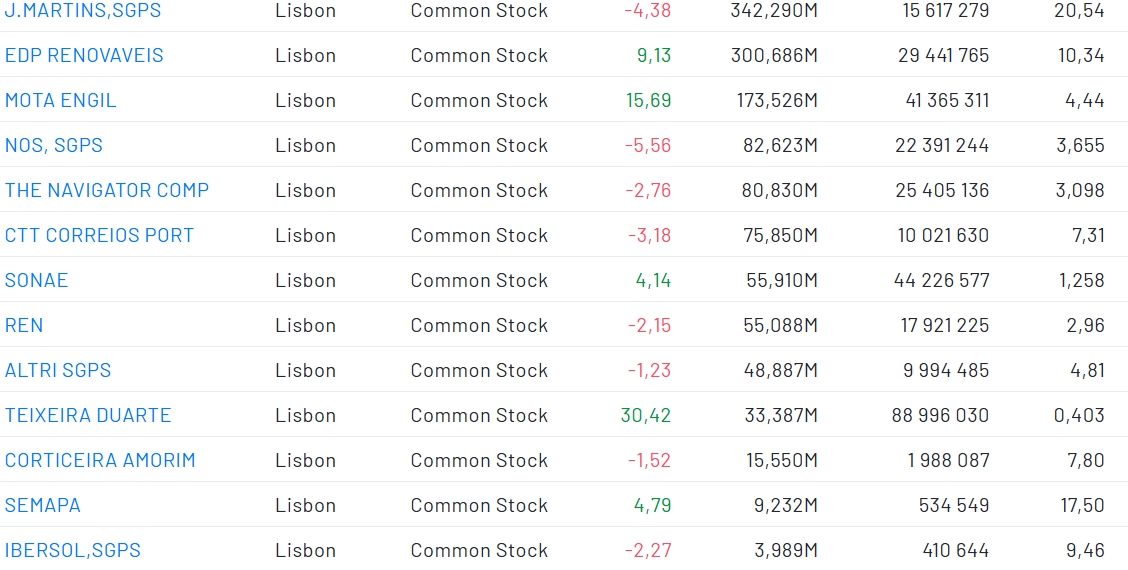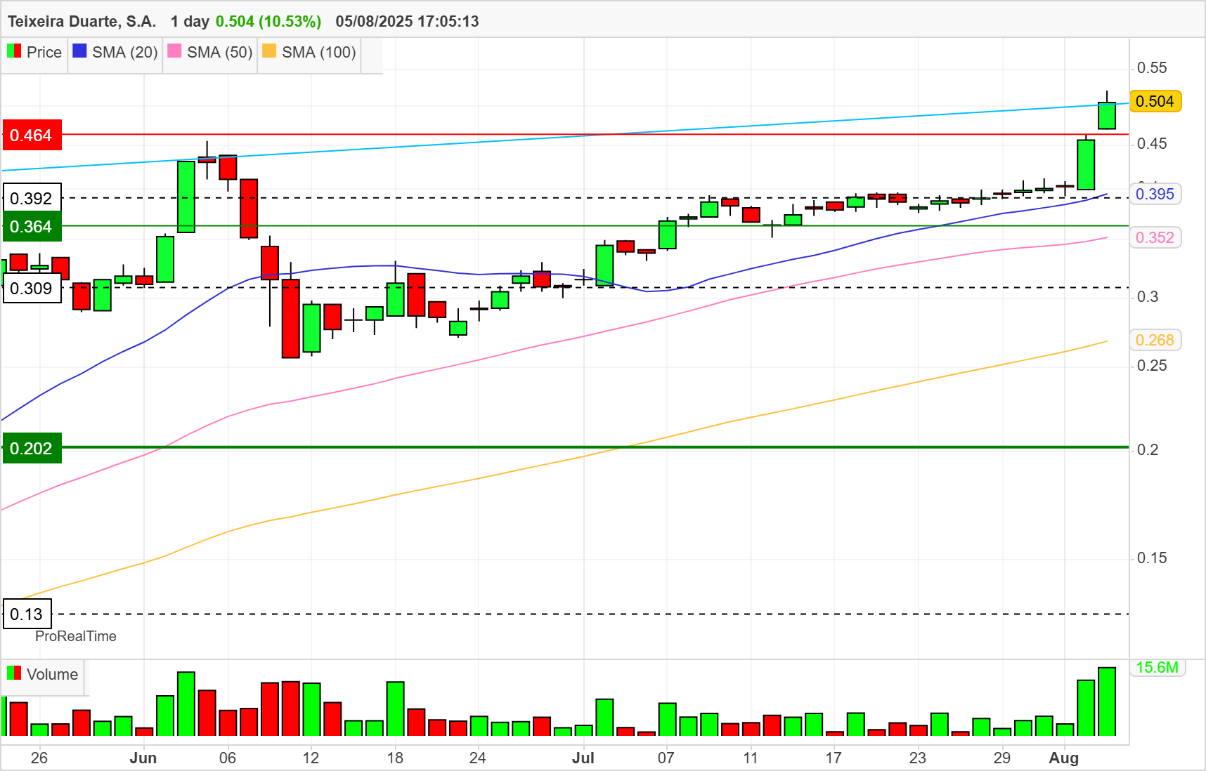 Maior movimento diário de sempre na Teixeira Duarte ,15 576 903 ações trocaram de mãos.