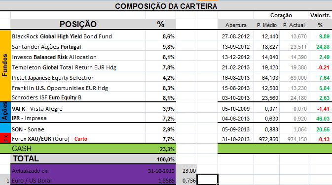 MAV8 Escreveu:Quanto à Vista Alegre, a história é diferente, nem para a frente nem para trás, mas o investimento foi feito numa perpectiva de jogo - passo a explicar, na altura jogava no totoloto todas as semana o que me levava x por mês e Y por ano sem ganhar nada. 100% de perdas... ...então um dia decidi que jogar por jogar ia jogar numa coisa diferente, abri a plataforma e comprei Vista Alegre ao preço médio de 0,071 e prometi a mim mesmo que ou fazia 100% de prejuizo ou 100% de lucro minimo, assim essas só a 0,00 ou a 0,15. Quanto ao totoloto e euromilhões - Não JOGO...