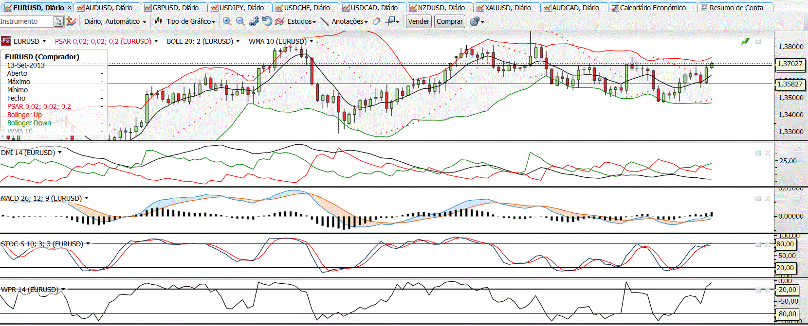 Para já irei colocando em sequência os gráficos diários que nesta altura possuem posições compradas ou vendidas, naqueles em que os de escala semanal coincidem portanto no mesmo posicionamento.