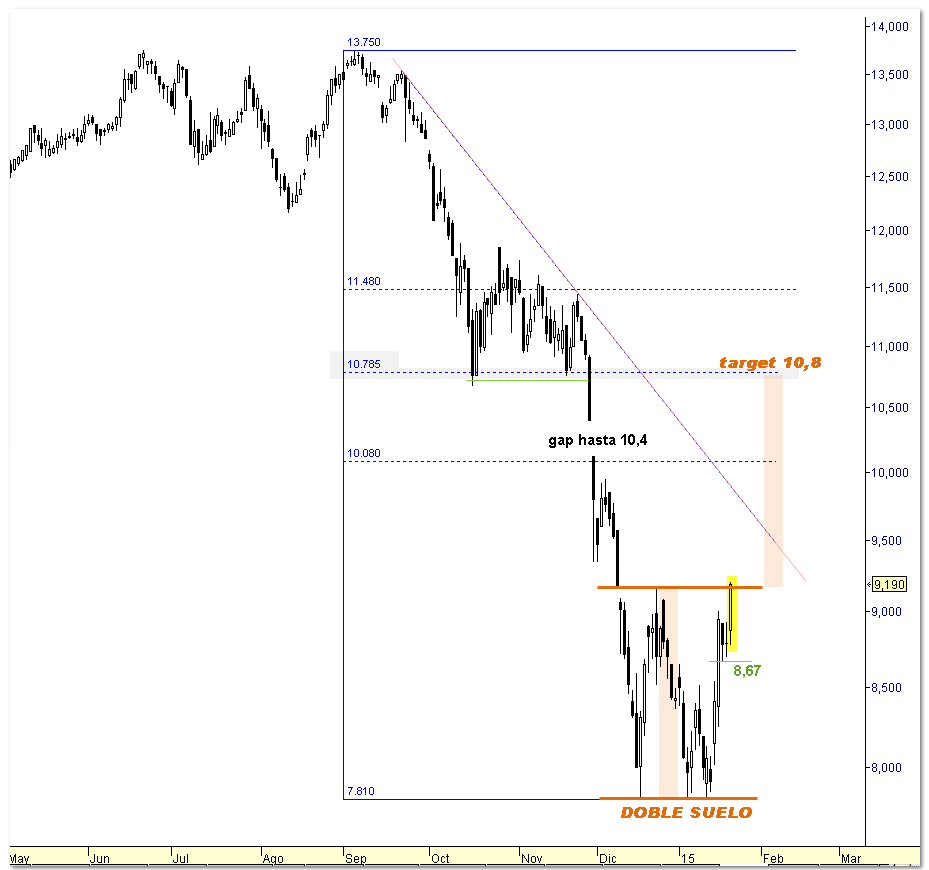O médio prazo esse tem como pressuposto um efeito sistémico de alta transversal - as bolsas europeias terão uma impulsão em alta (vão acentuar a dissociação dos ìndices norte americanos), e vão por isso acomodar a "falência" da Venezuela e da Rússia, aclamar uma eventual saída do Euro pela Grécia, tolerar uma subida gradual da inflação e de algumas commodities como o petróleo, o cobre, ferro, lithium e "agricolas" (o ouro, que ontem superou o canal descendente de médio prazo, e a prata é que vão andar em montanha russa devido à tx de juro Americana em subida e a um Fear factor volátil - a MM20 e a MM5 serão essenciais para posições longas e curtas).