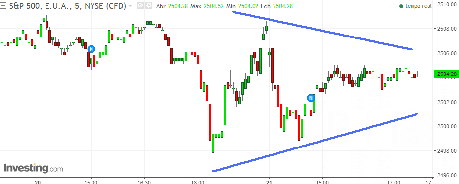 Hoje em gráfico com frame de curta duração: Os futuros do sp 500 face ao Eur/dolar