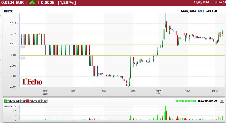 Boa tarde a todos. O BANIF parece querer "despertar do coma", já lá vão 3,5 meses a subir. Neste momento para mim era importante consolidar nos 0,012€ para atacar os 0,013€. A partir daí não vejo resistências até aos 0,045/0,05€, o que não quer dizer que seja sempre a subir. Abaixo dos 0,011€ salto fora.