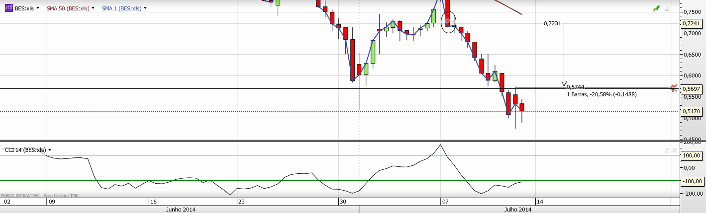 Alta volatilidade no Bes e perigo de fecho em mínimos, o que quanto a mim poderia mandar a cotação na próxima semana para a casa dos 30 cêntimos.