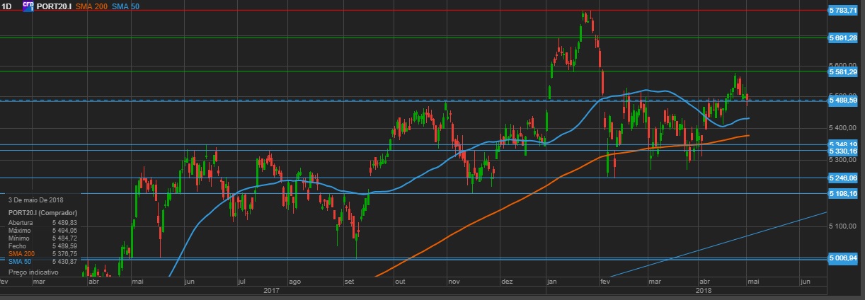 Para jà continua a luta entre ursos e touros entre os 5500 e 5600 pontos jà com vàrios dias de pancadaria,mas à medida que o tempo passa a probabilidade começa a ficar do lado dos touros.