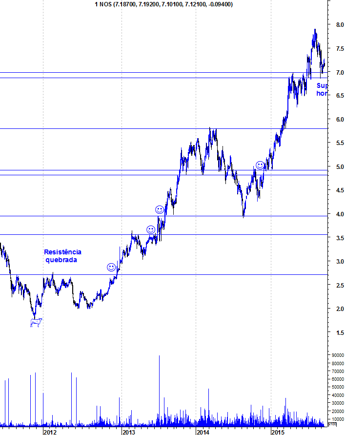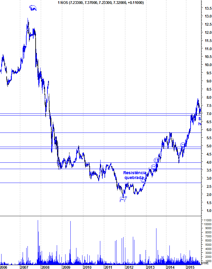 soso, entendo o teu ponto de vista mas deixo aqui um outro ponto de vista oposto. A Nos é das poucas acções na Bolsa portuguesa que nao quebrou suportes relevantes e que mantém o actual Bull Market. Enquanto não quebrar o suporte entre os 6,85 e os 6,95 os touros dominam em todos os horizontes temporais.