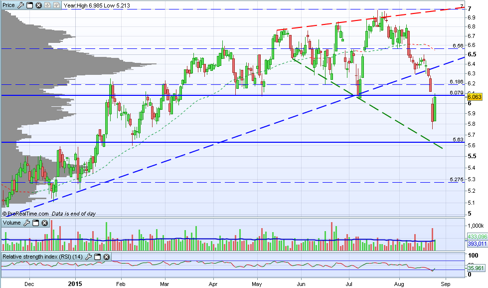 Pikota, esta semana ainda ando aqui sem gráficos por questões técnicas. Mas eu diria que, apesar da quebra dos 6,1/6,2 não ter sido um bom sinal, é importante que a zona de suporte entre os 5,7 e 5,8 aguente.