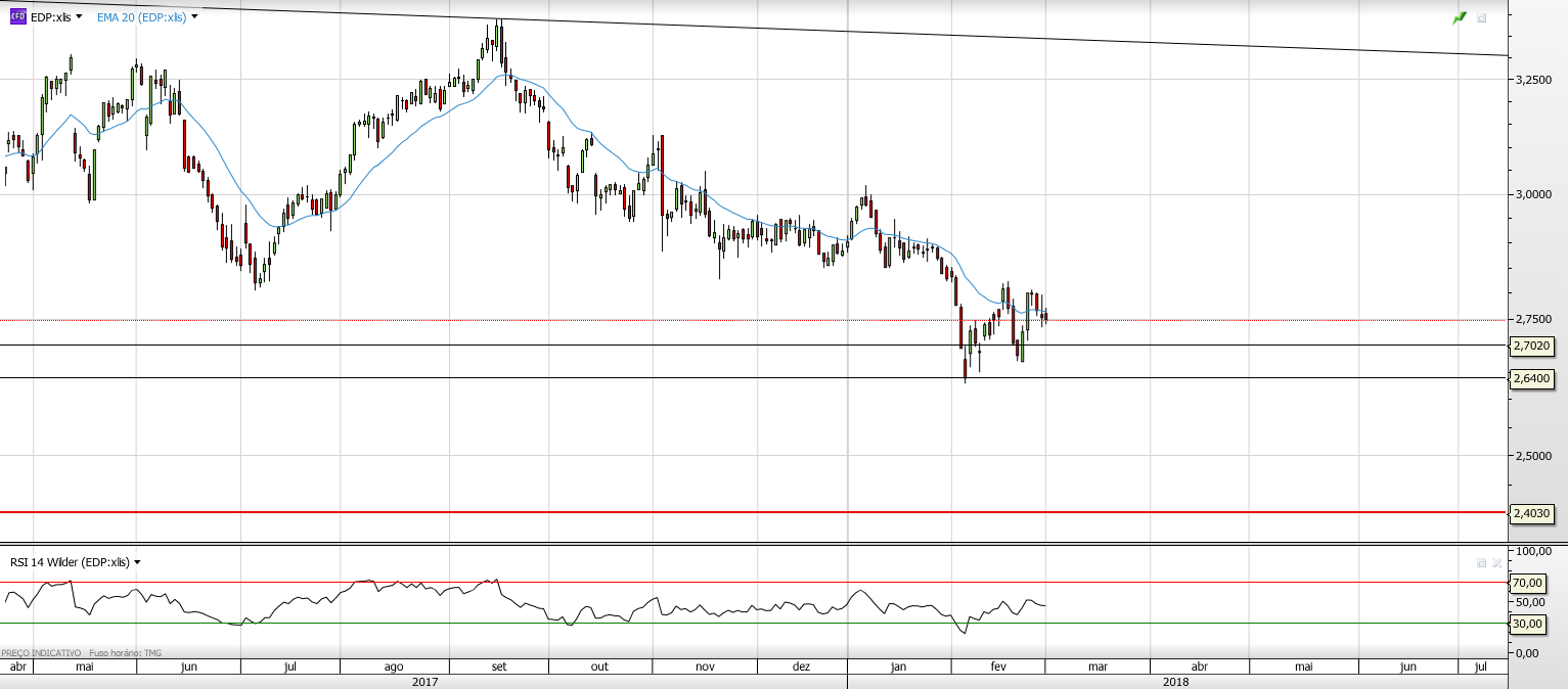 Aguenta-se até ao dividendo , tal como CTT mas a partir dai , os cenários são diferentes e poderá continuar a ser penalizada , por inúmeros motivos que já constam das analises inclusive da ultima do CITI que lhe atribui Ptarget de 2.30 para final de 2018.