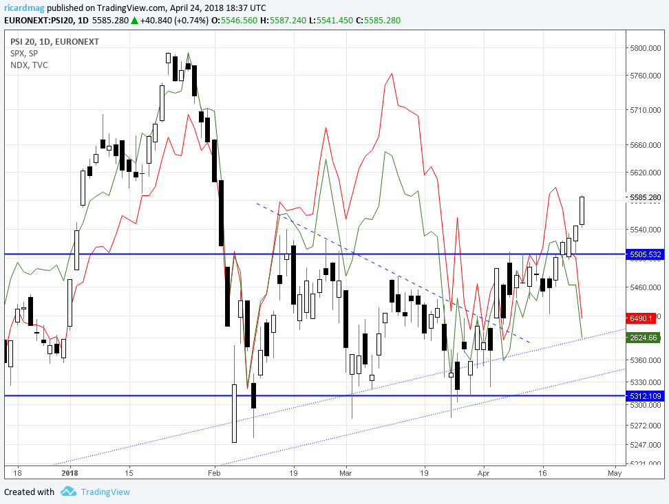 Maceira, aqui a questão não é se é um, dois ou 3 fechos acima. A questão é ser acima. Para mim fechar a 5530, 5470 ou 5500 é quase a mesma coisa. São fechos na zona de resistência. O que o PSI precisa é de fechar claramente acima da zona de resistência.