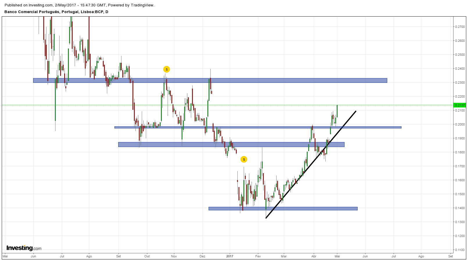 O BCP é a empresa que reage com mais força aos suportes, há claramente compradores fortes sempre que se aproxima de suportes e isso é um sinal bull.