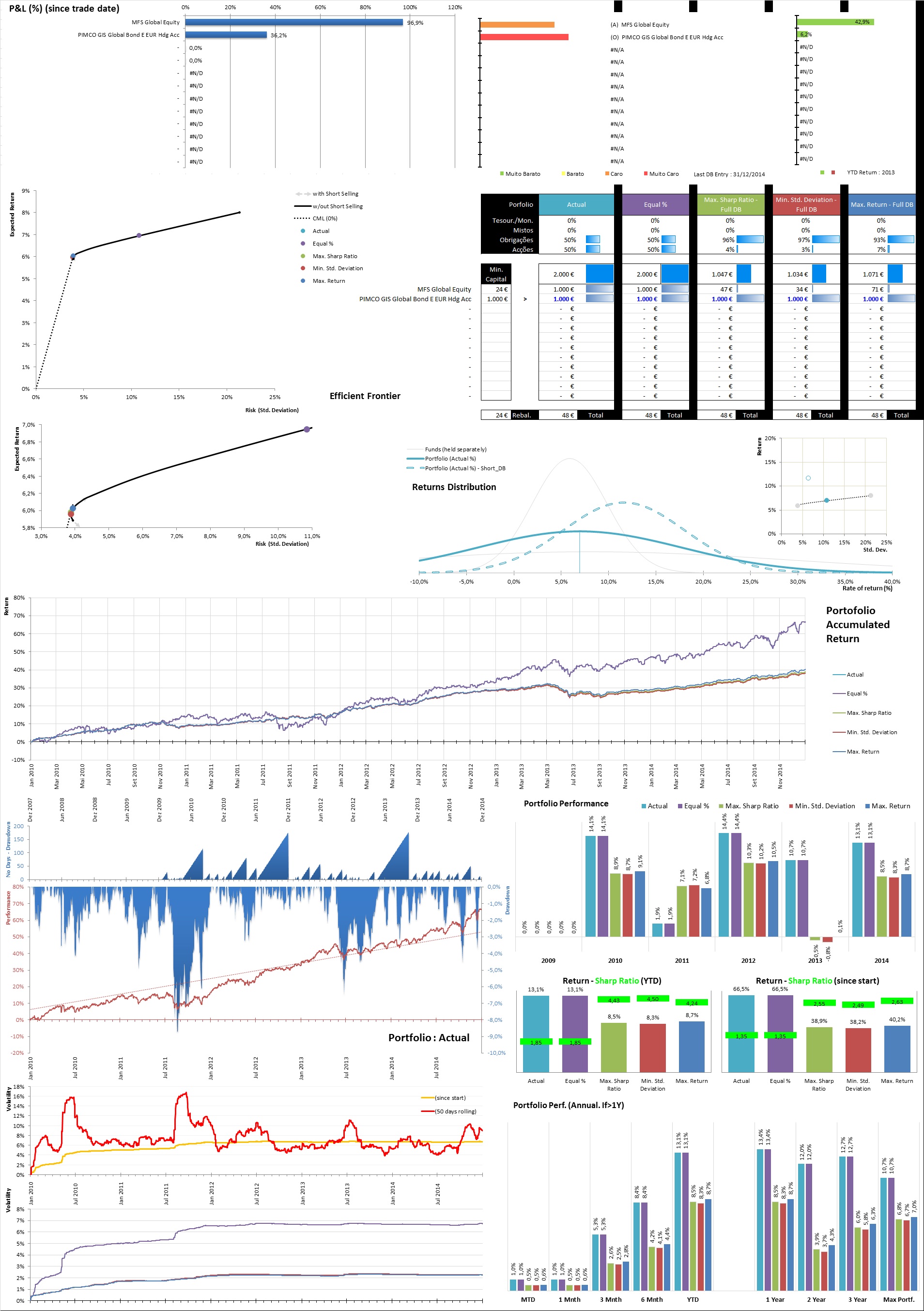 aqui fica uma simulação, com uma entrada a 01/01/2010 e sem reforços/rebalanceamento - sem dados de 2015
