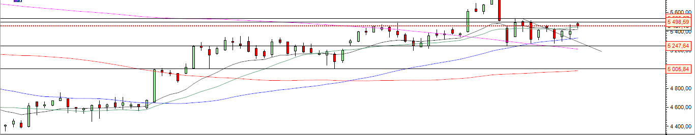 Se estivesse em casa sozinho, ia pela possibilidade de rompimento da resistência após fechamento do gap dos 5400. Mas como me ensinam todos os dias: evitar a todo o custo operações dentro de consolidações, não ser junto de zonas de resistência ou suporte. (tenho visto uns vídeos no YT onde uns defendem os rompimentos e outros apoiam.se nas reversões aquando a chegada às linhas)