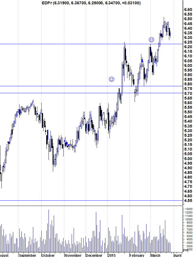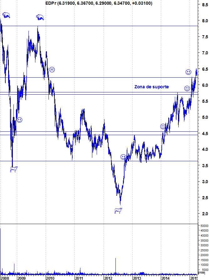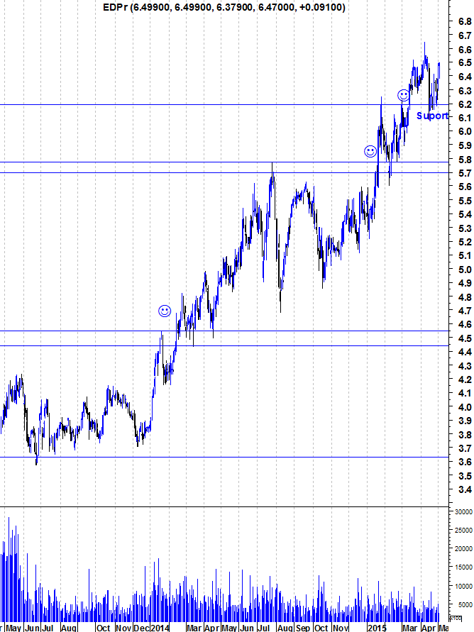 Penso que pelo gráfico do Ulisses tinha uma resistencia por volta dos 6,35, que foi quebrada e agora passa a supporte.