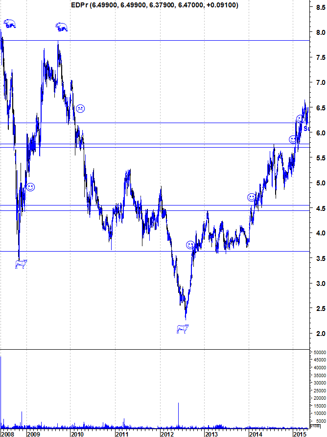 Eu por exemplo, tenho acções da EDPr desde 2010, na altura entrei a 6.27 e foi sempre a cair, deveria ter saltado fora mas não sai, fiquei com elas estes anos todos e só agora é que voltaram ao valor da minha entrada.
