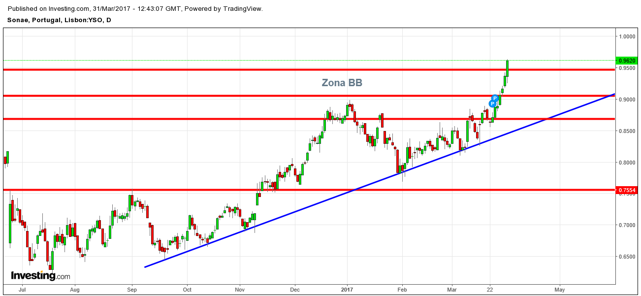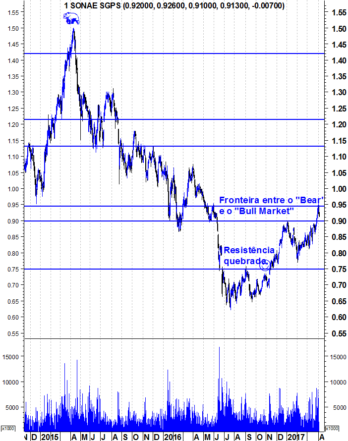 A quebra da resistência da semana passada deve levar a sonae a outros voos.