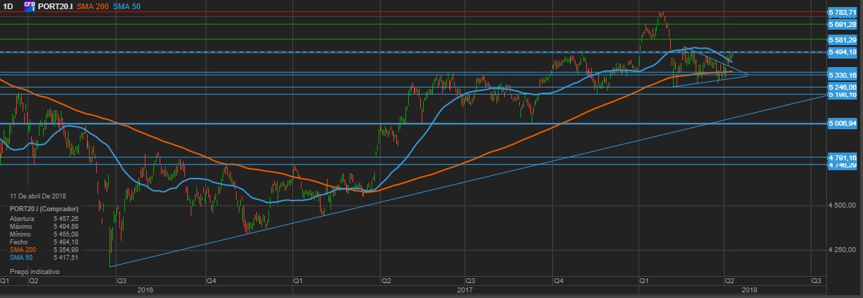 Ainda não foi hoje que atingiu os tais 5500, mas continuo com poucas duvidas que o caminho do PSI é para norte.