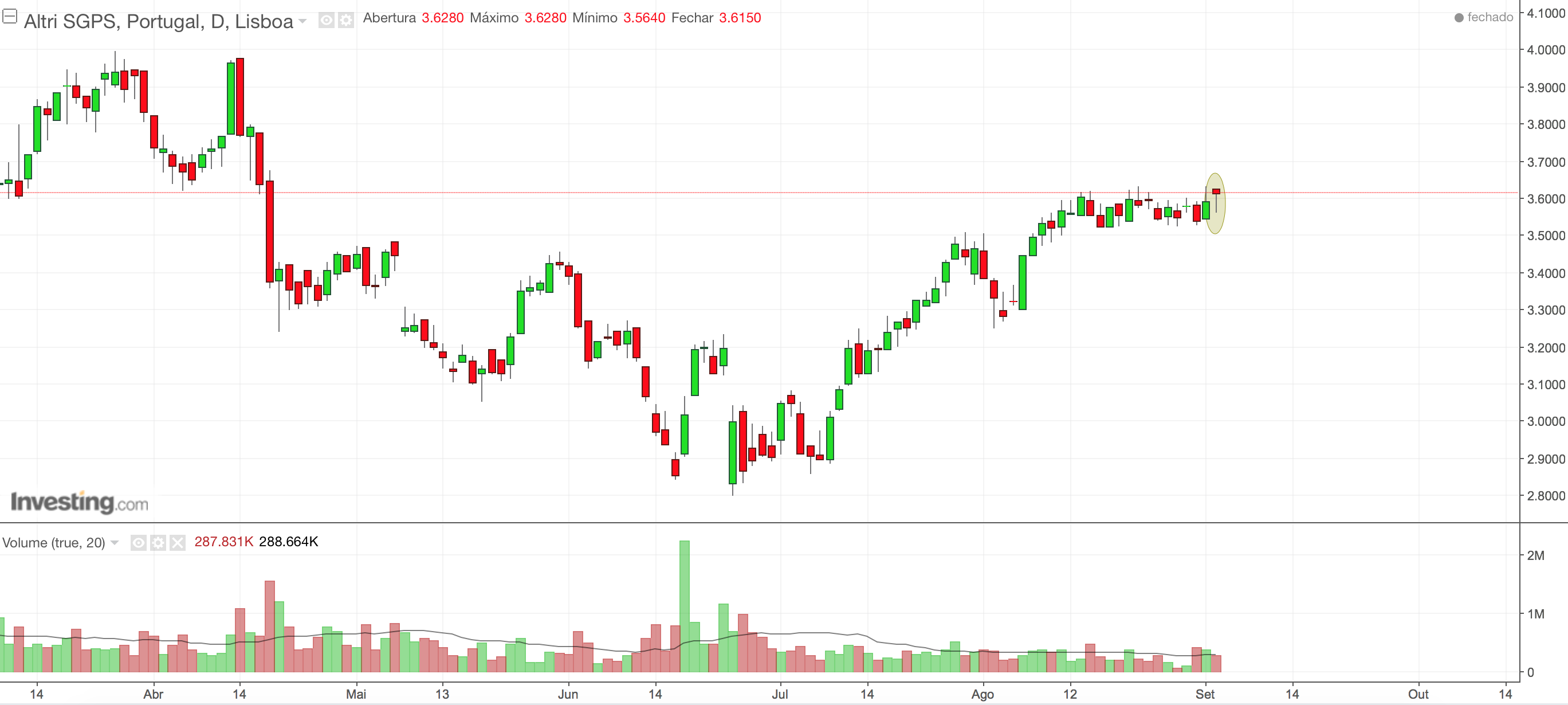 tyui Escreveu:Mais uma sessão onde os 3,62€ se mostraram uma vez mais como forte resistência.