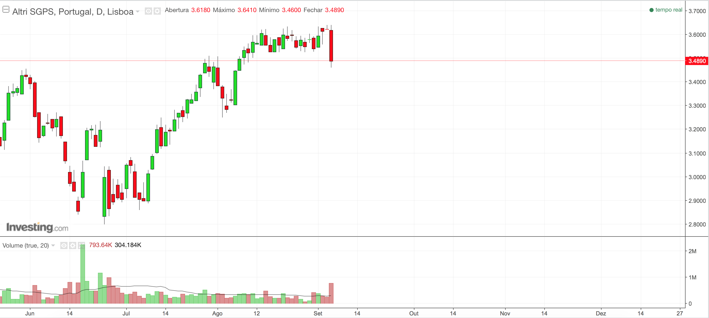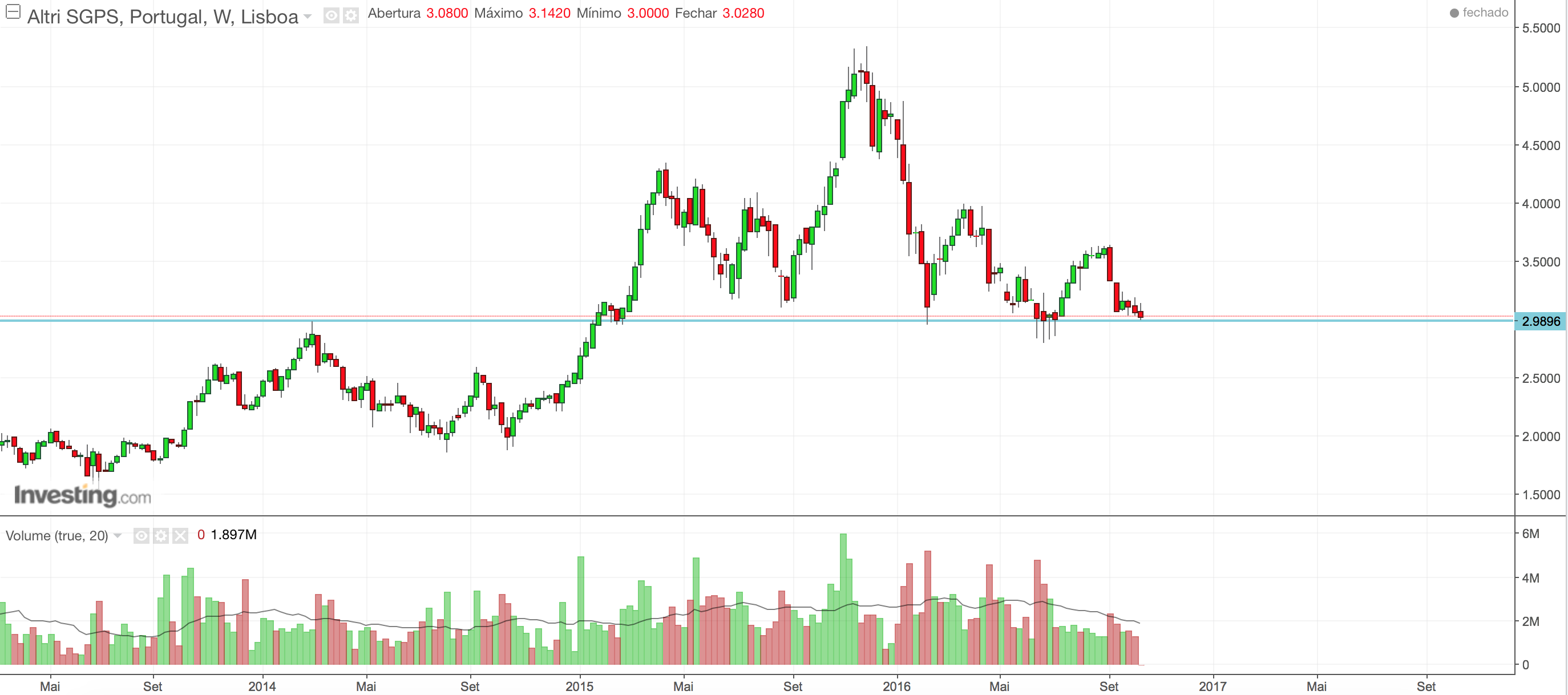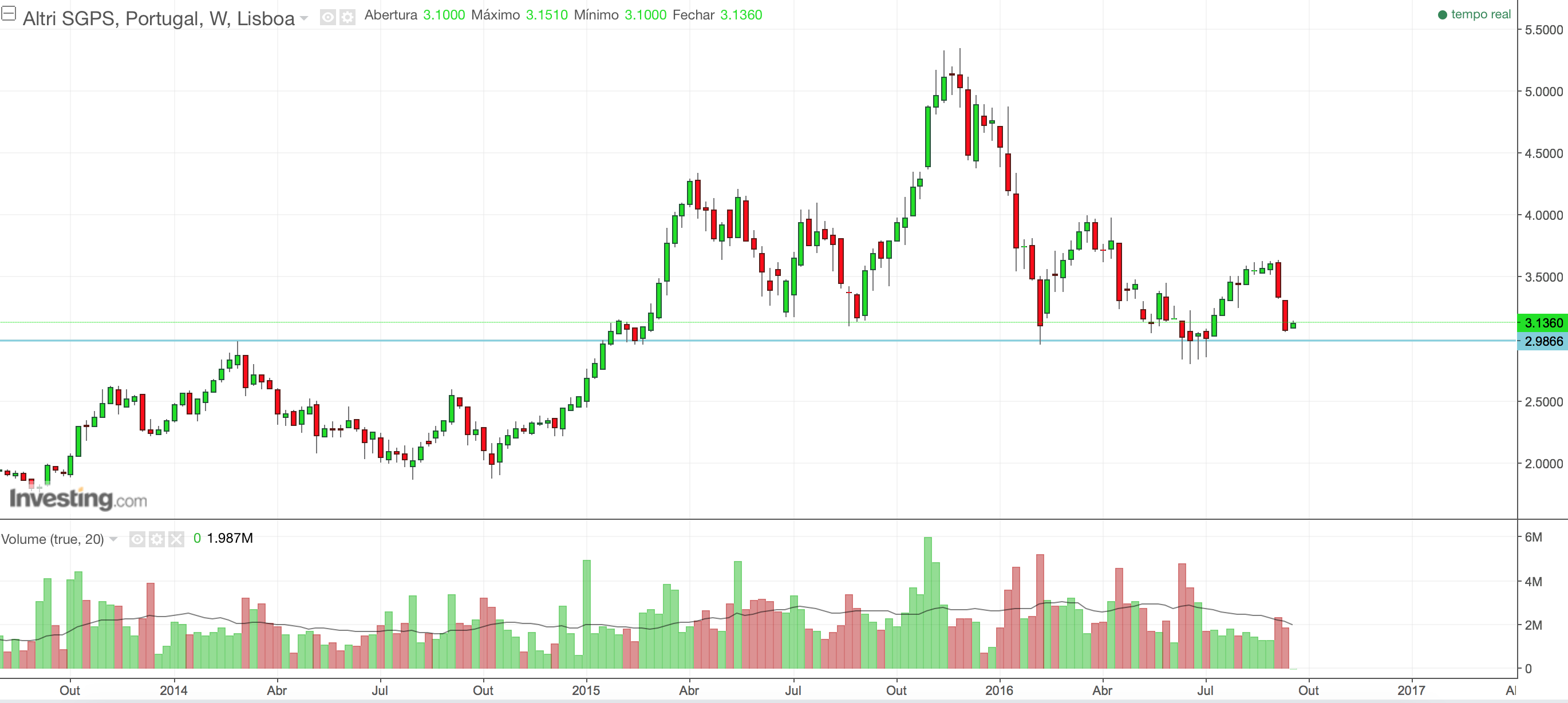 tyui Escreveu:A Altri encontra-se praticamente em mínimos de 1 mês e num enorme "marasmo" sempre entre os 3,05 e os 3,10...
