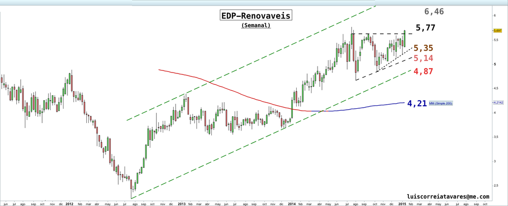Ulisses Pereira Escreveu:Apesar de toda a turbulência que afectou a Bolsa portuguesa, a EDP Renováveis está muito próxima do seu máximo dos últimos 4 anos.