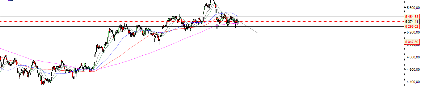 O PSI desenvolve neste momento um movimento descendente de curto prazo debaixo de uma LTD de curto prazo que vem desde meados de Fevereiro e uma linha de suporte na zona 5300, sendo que a confluência destas 2 linhas estará a chegar a um ponto de decisão que deverá implicar um movimento maior num dos sentidos .
