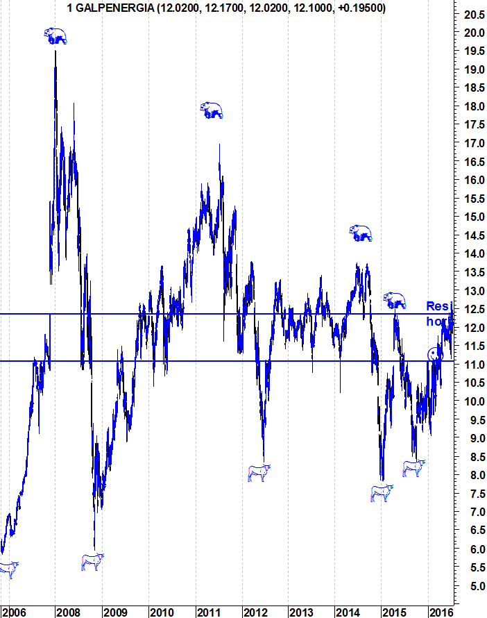 Aqui ficam os gráficos actualizados da Galp, numa altura do ano em que a acção anda a namorar a resistência dos 12,3/12,5. Quando a quebrar consistentemente temos porta aberta para novas subidas. Para já, quem esstá fora e quer entrar ou espera por uma retracção ou por essa quebra de resistência. Quem já está dentro, numa perspectiva de médio e longo prazo continua a não haver qualquer sinal de saída da acção.